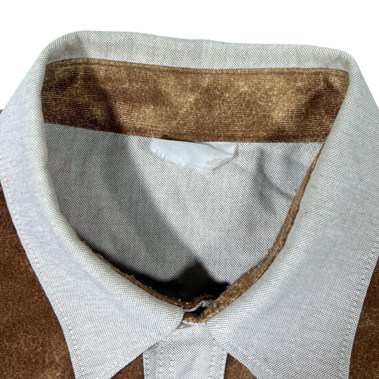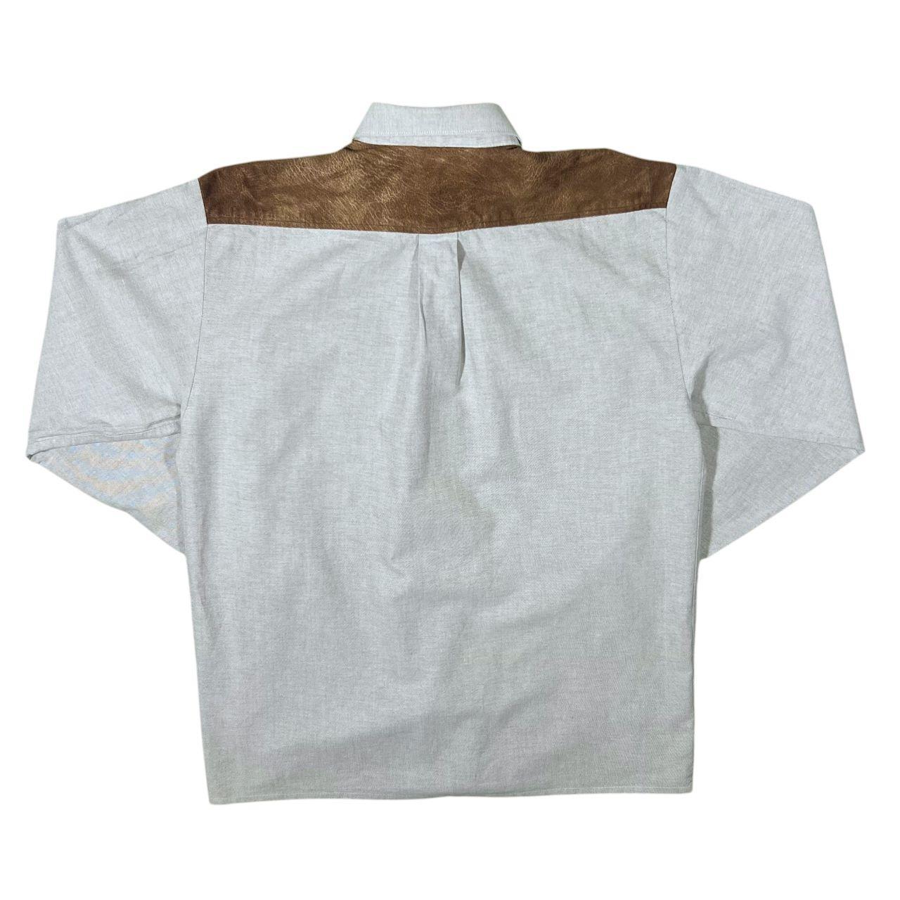 Cowboy Western Style Suede Effect Panel Linen Blend Long Sleeve Shirt