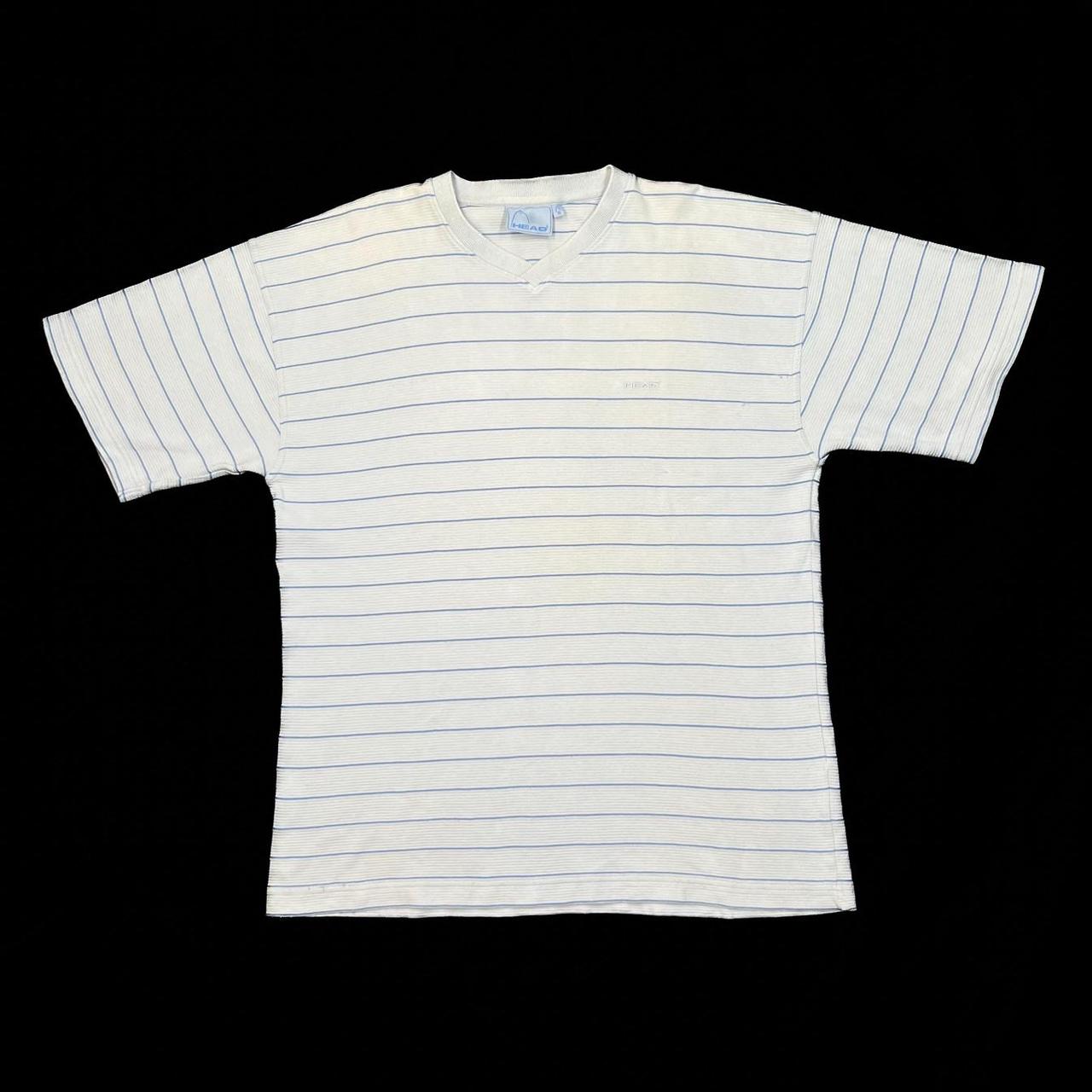 Early 00’s HEAD Classic Embroidered Mini Logo Spellout Striped V-Neck T-Shirt