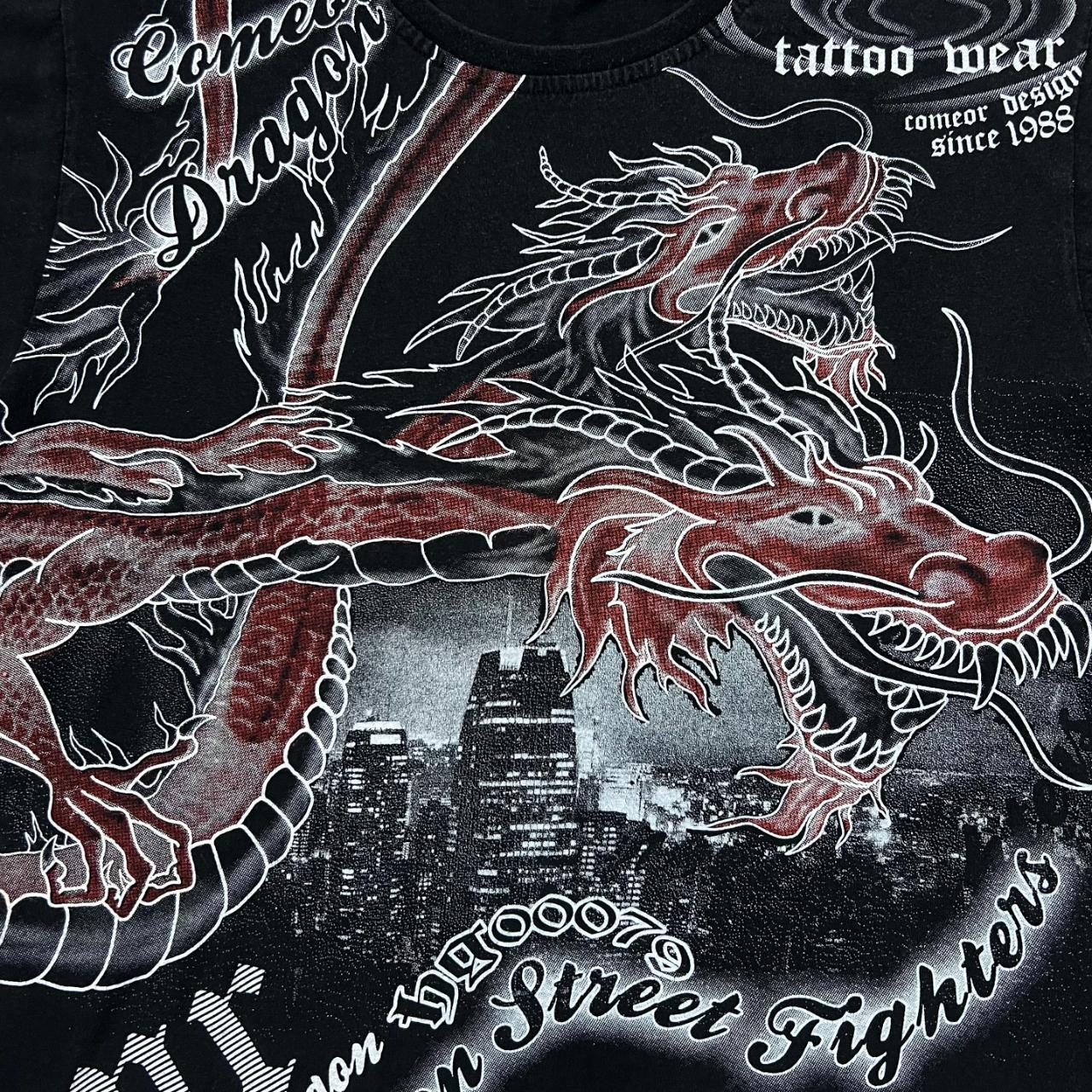 Early 00's COMEOR DRAGON STREET FIGHTERS Gothic Biker Dragon Spellout Graphic T-Shirt