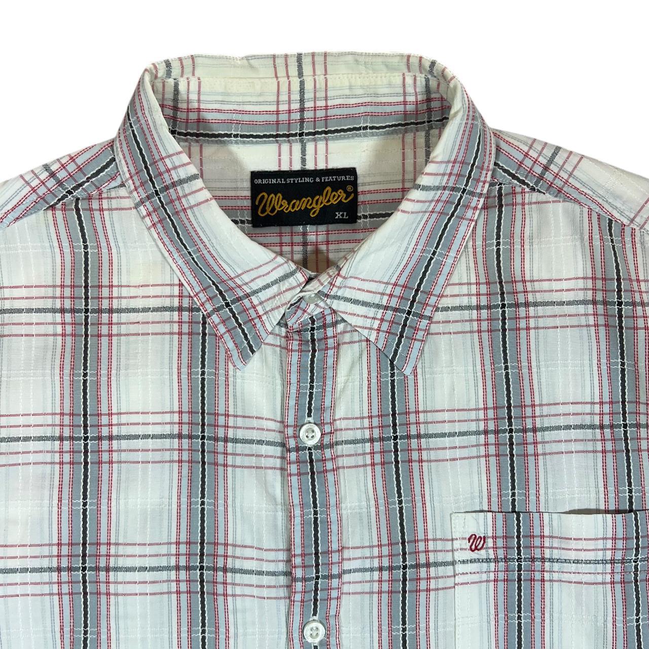 Early 00's WRANGLER White Red Grey Plaid Check Short Sleeve Cotton ShirtSize: XL (See measurements)Colour: White/Red/Grey CheckDetail: 100% cotton material.Condition: Light general wear as expectedMeasurements: Pit to Pit: 23.5"Length: 30.5"Shoulder to Cuff: 9.5"#SH174