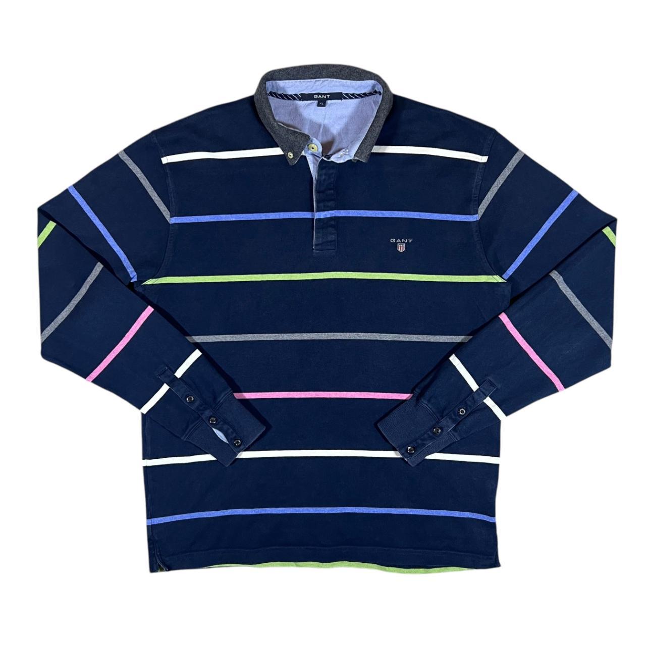 GANT Classic Mini Logo Multi Colour Striped Long Sleeve Rugby Polo Shirt