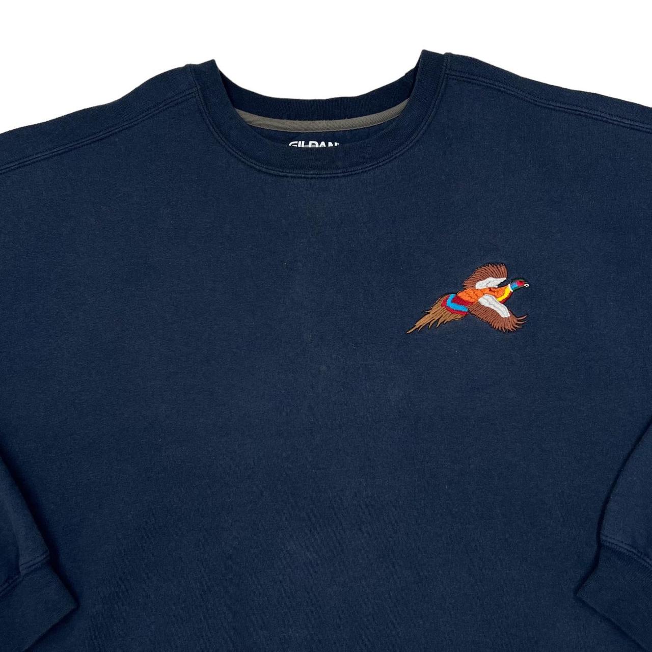 GILDAN Embroidered Pheasant Bird Animal Nature Crewneck Sweatshirt