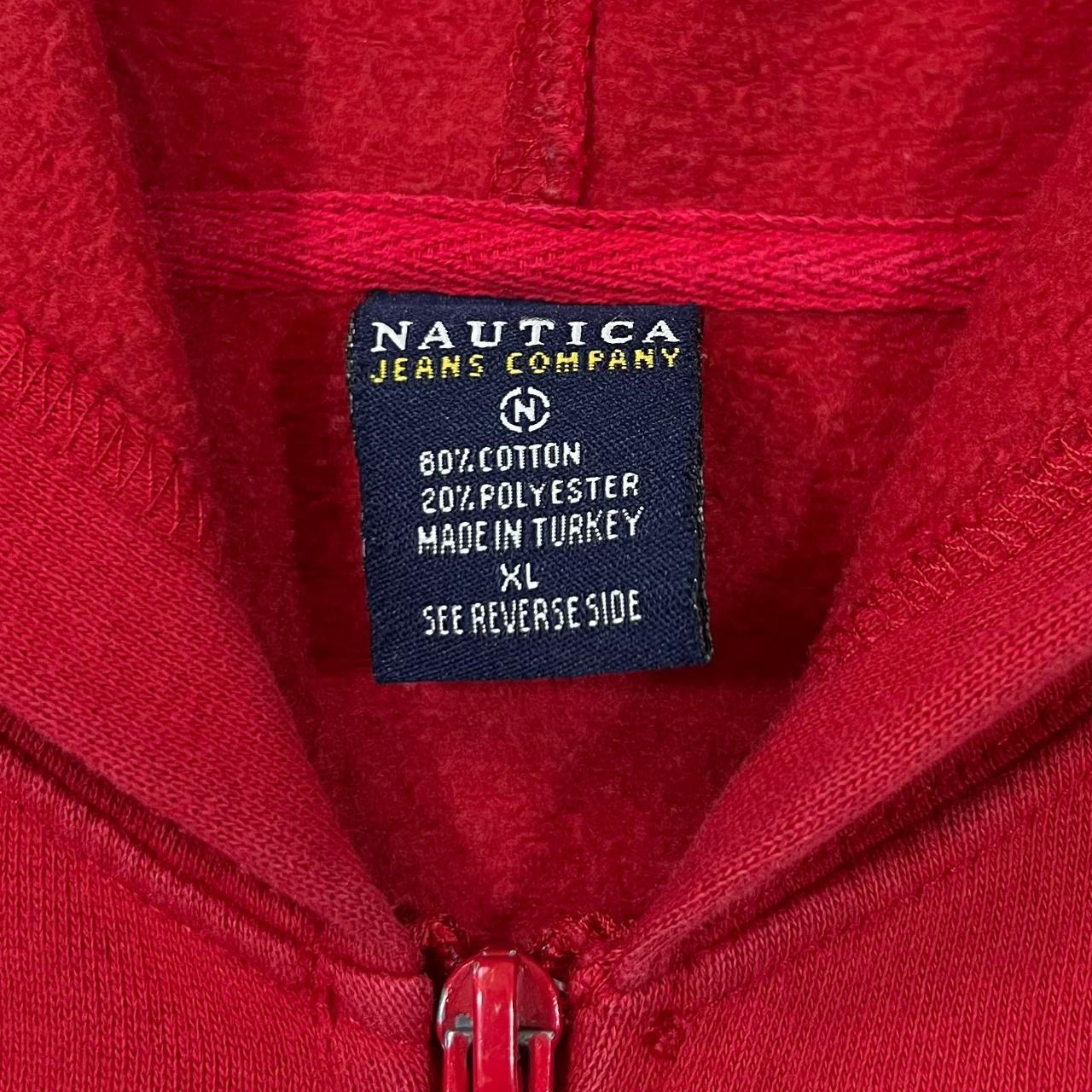 NAUTICA JEANS CO. "NJC" Big Logo Spellout Graphic Red Zip Hoodie