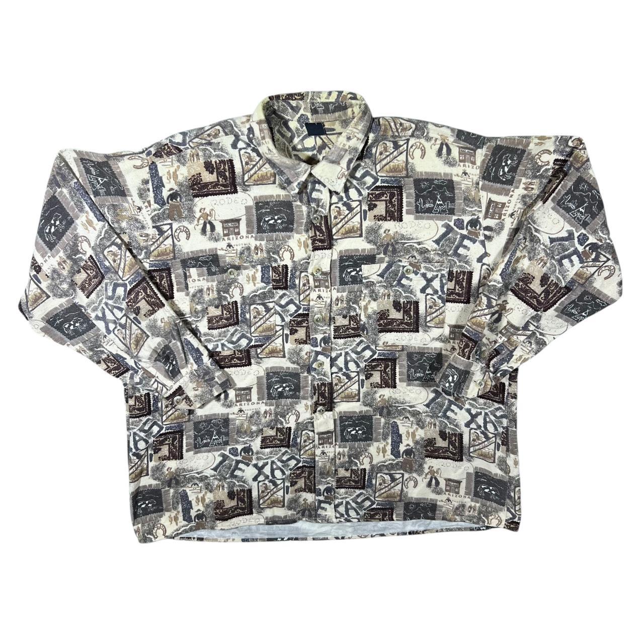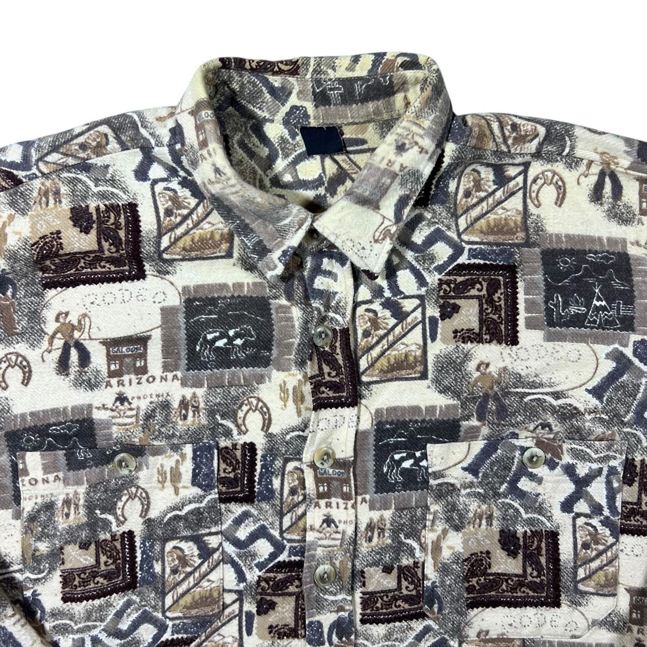 Vintage 90's Arizona Rodeo Texas Cowboy Patterned Long Sleeve Flannel Shirt