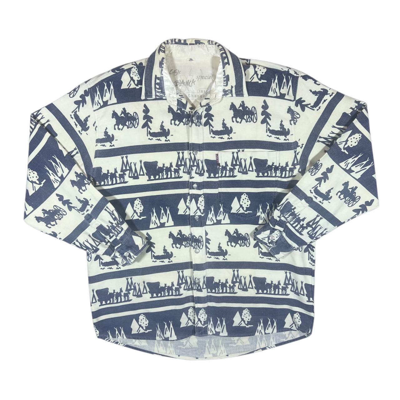 Vintage 90's CASA BLANCA Cowboy Western Patterned Striped Long Sleeve Flannel Shirt