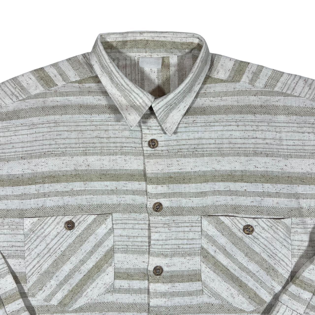 Vintage 90's Cream Beige Multi Striped Long Sleeve Flannel ShirtSize: Label faded but fits XL (See measurements)Colour: Cream/BeigeDetail: Quality striped design. Condition: Light general wear as expected.Measurements: Pit to Pit: 25"Length: 30"Shoulder to Cuff: 23.5"#OG60