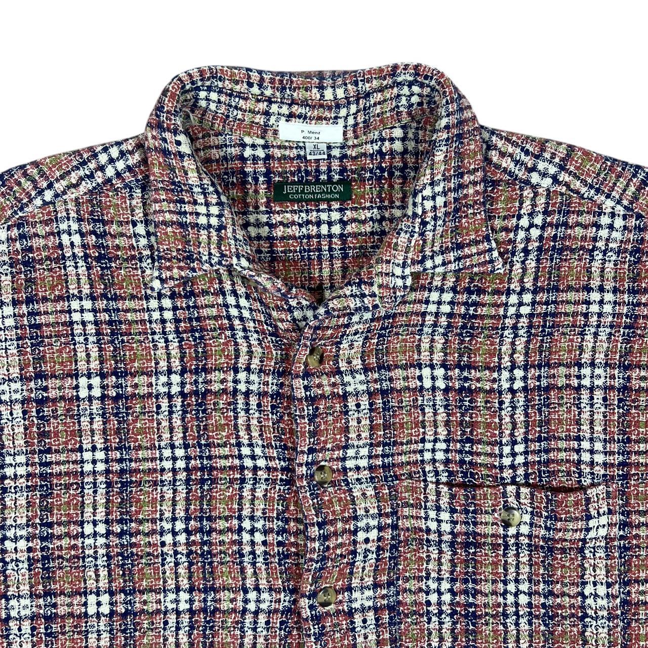 Vintage 90's JEFF BRENTON Plaid Check Long Sleeve Flannel ShirtSize: XL (See measurements)Colour: Red/Blue/White MixDetail: Quality checked design. Condition: Light general wear as expected Measurements: Pit to Pit: 25"Length: 31"Shoulder to Cuff: 24"#OG56