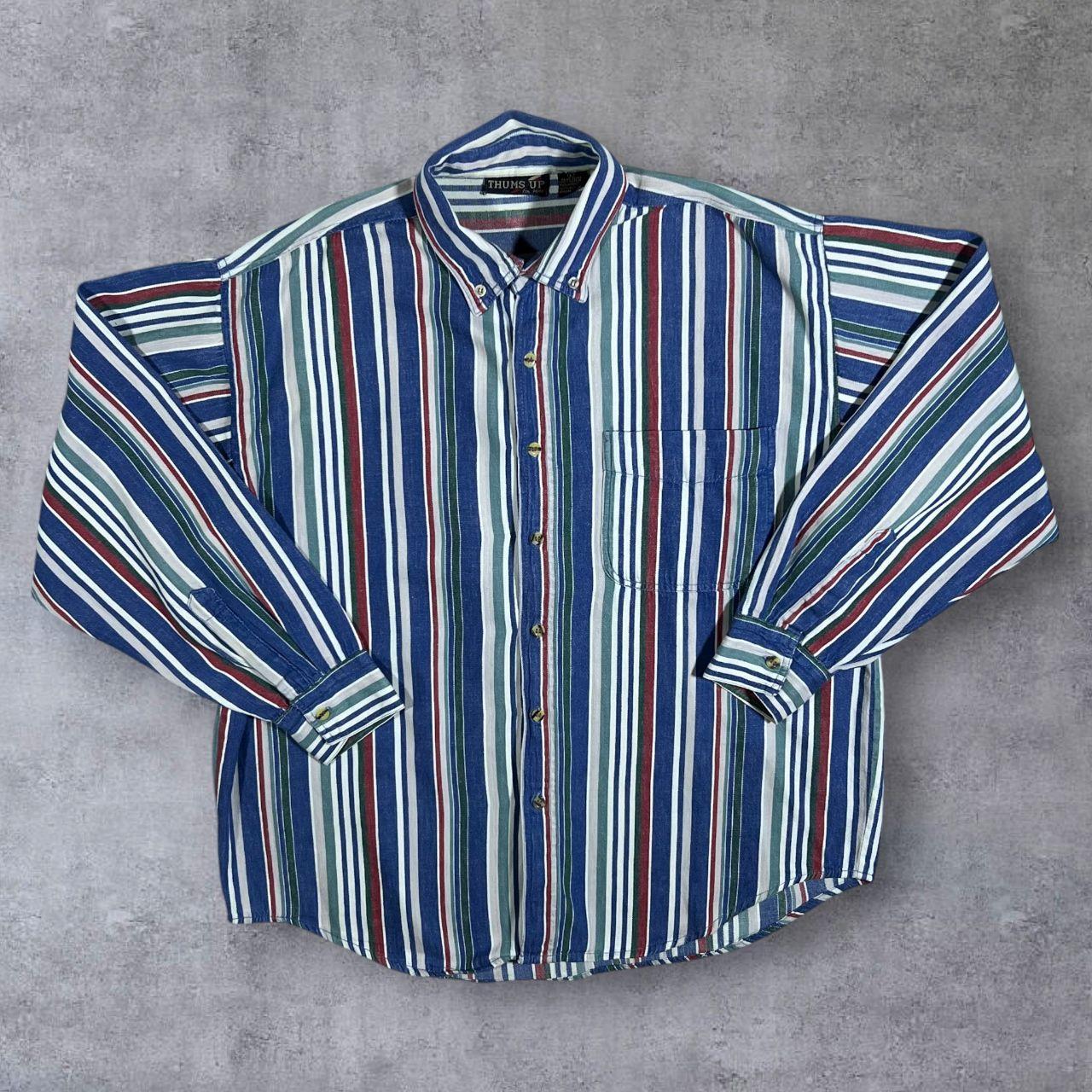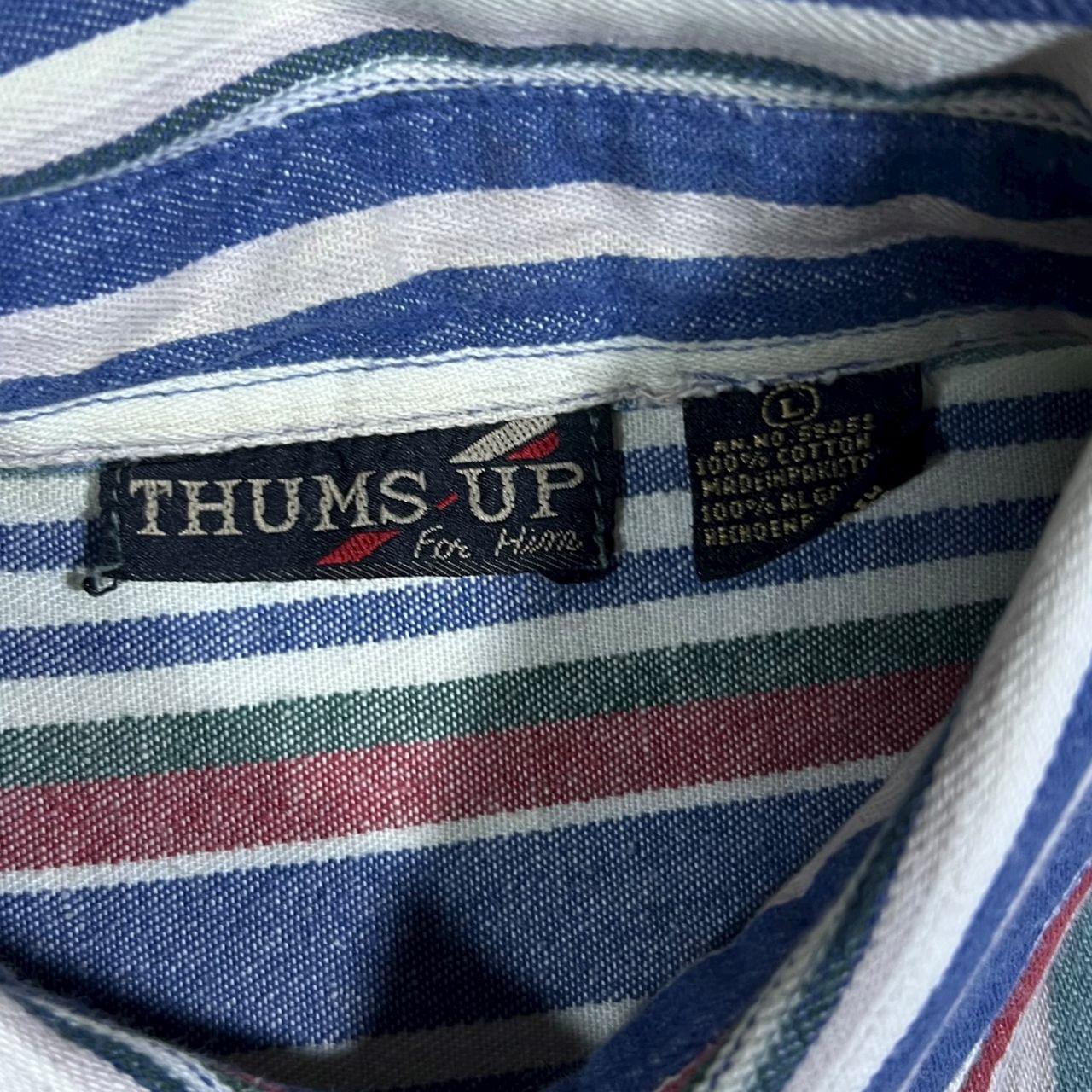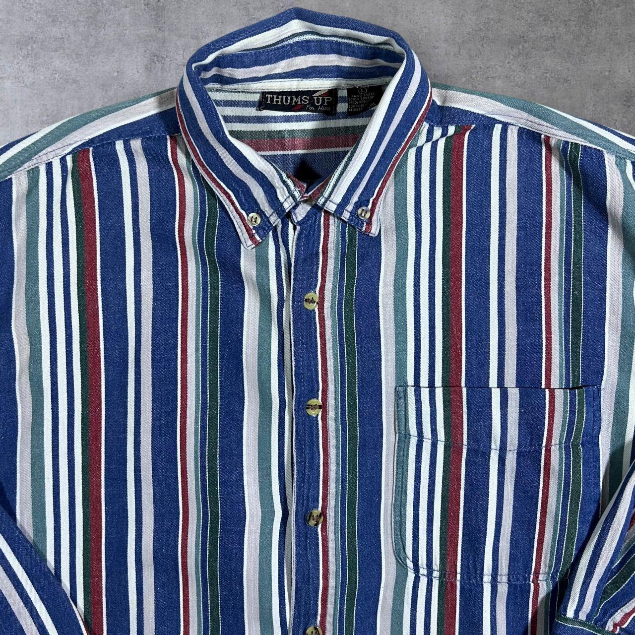 Vintage 90's Thums Up Multi Colour Striped Cotton Long Sleeve Button-Up Shirt