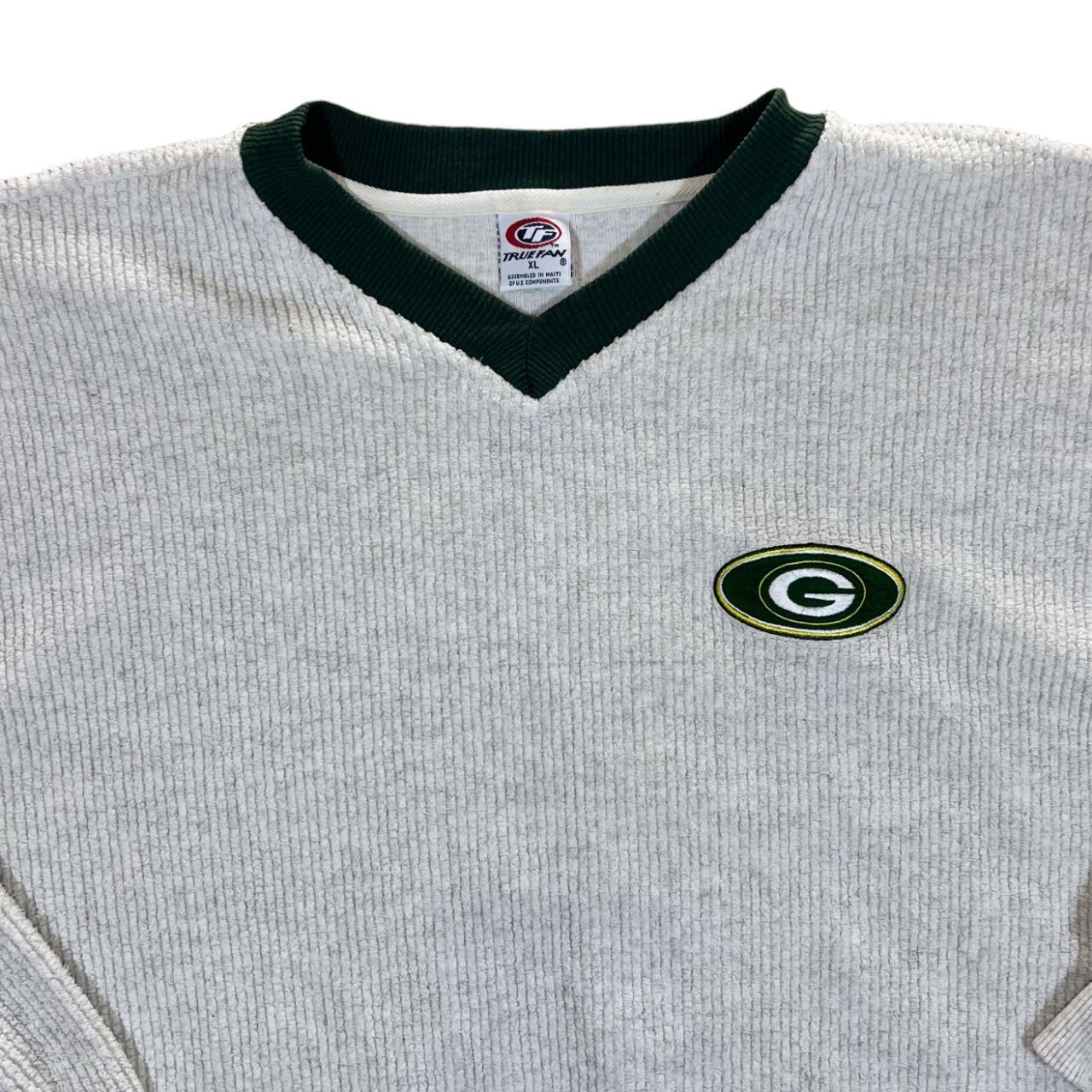 Vintage 90's True Fan NFL GREEN BAY PACKERS Football Embroidered Logo Towelling V-Neck SweatshirtSize: XL (See measurements)Colour: Grey/GreenDetail: Embroidered mini logo design to chestCondition: Light general wear as expectedMeasurements: Pit to Pit: 27”Length: 30”Shoulder to Cuff: 22.5”#10696
