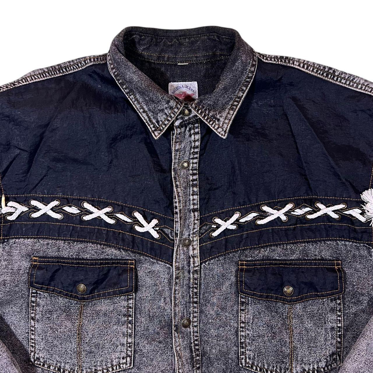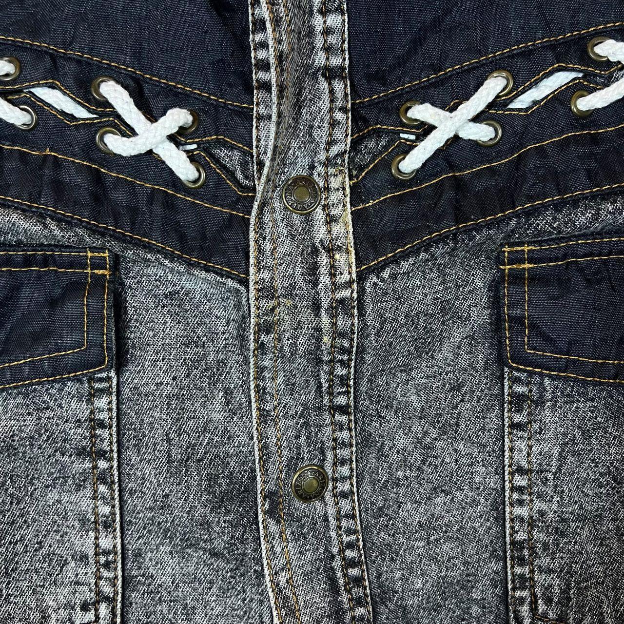 Vintage Arizona Jeans Cowboy Western Grey Acid Wash Denim Popper Long Sleeve Shirt