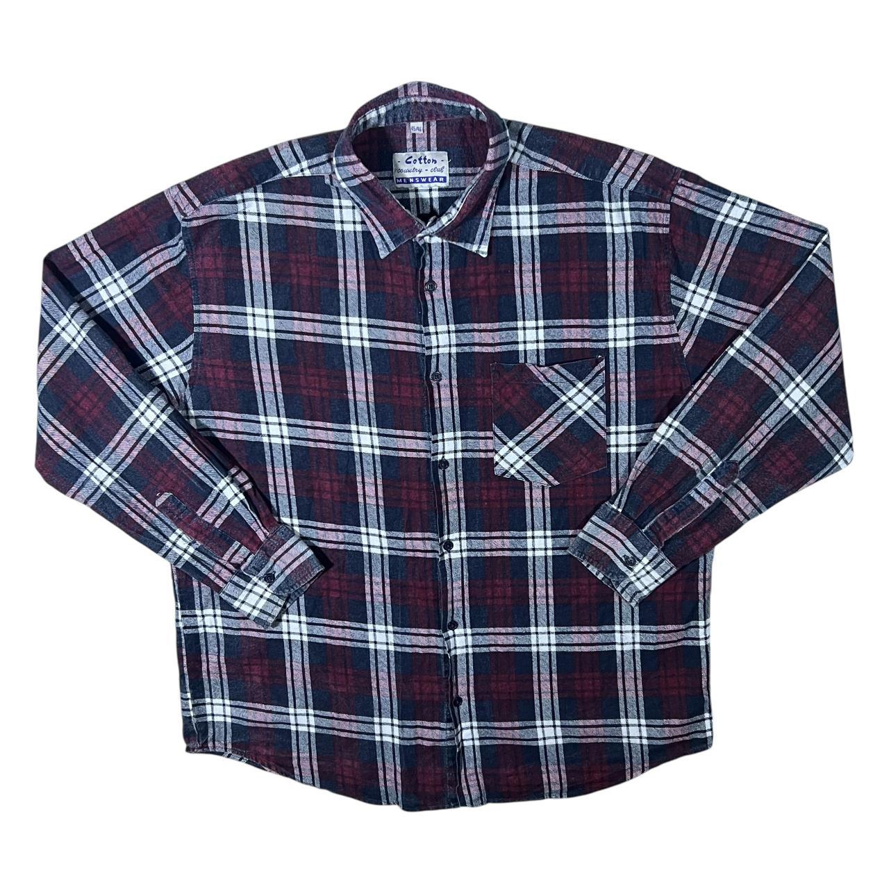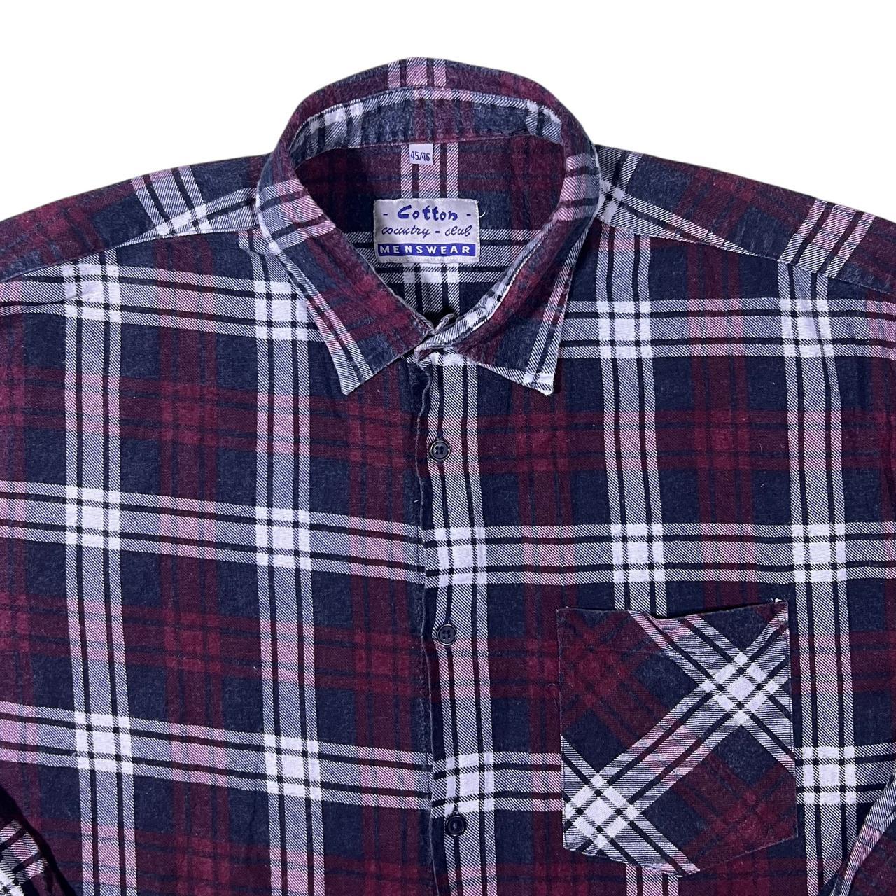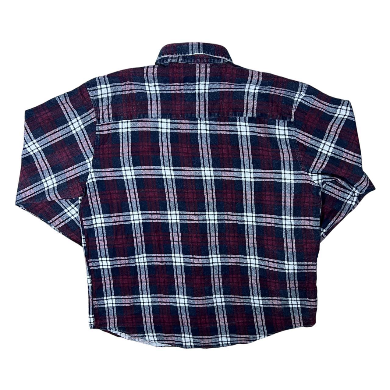 Vintage Cotton Country Club Burgundy Black Plaid Check Long Sleeve Cotton Flannel Shirt