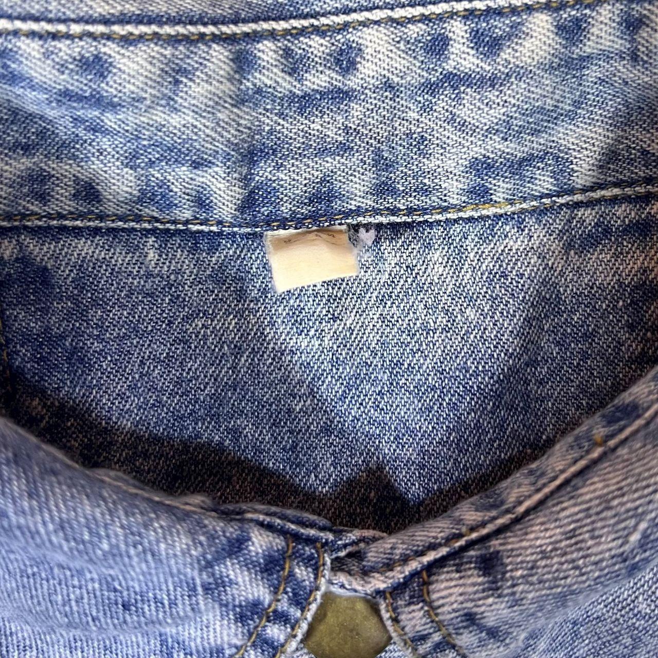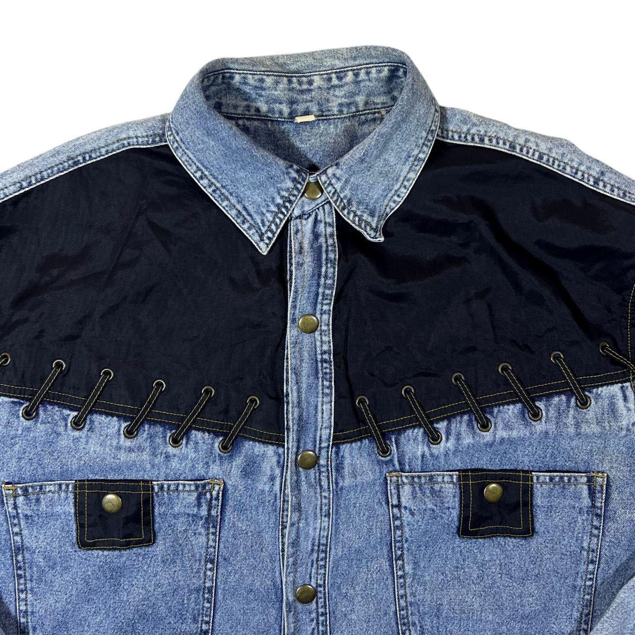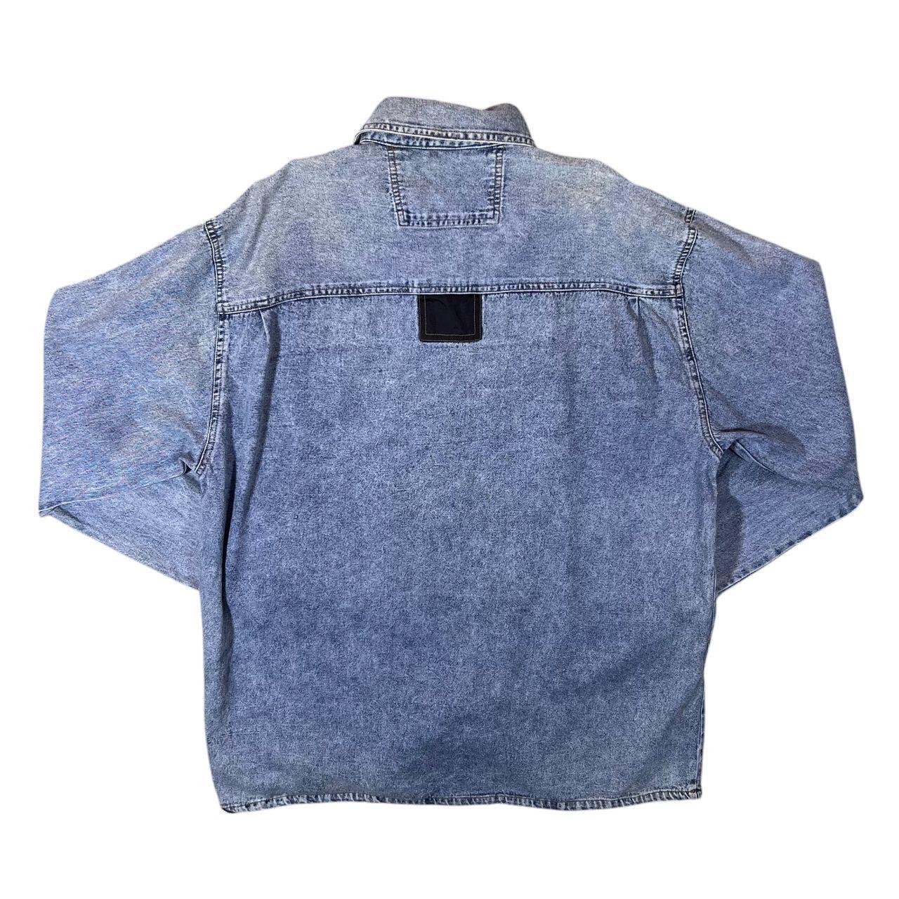 Vintage Cowboy Western Acid Wash Blue Denim Popper Long Sleeve Shirt