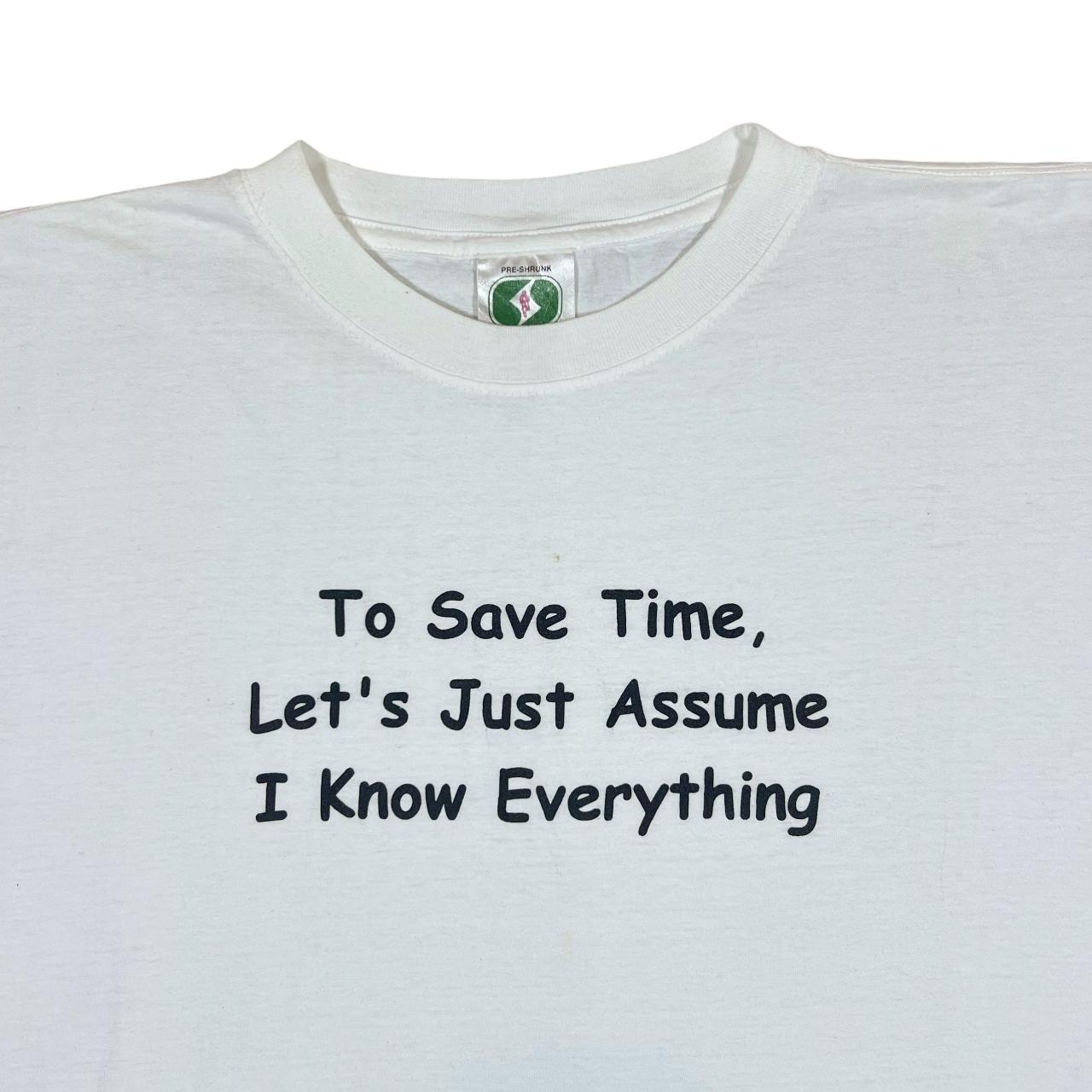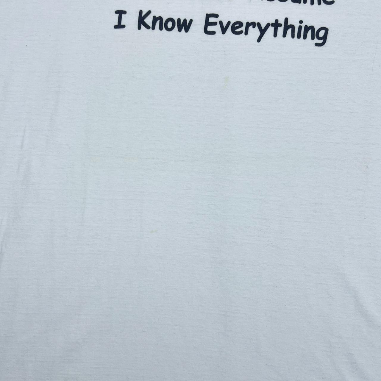 Vintage I KNOW EVERYTHING Novelty Spellout Graphic White T-Shirt