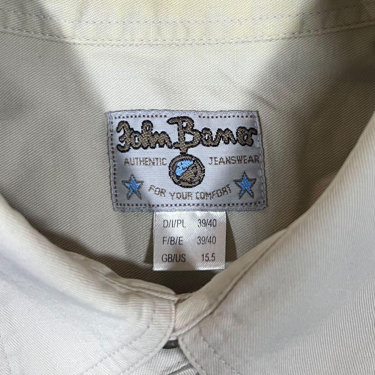 Vintage John Baner Cowboy Western Beige Blue Cotton Long Sleeve Shirt
