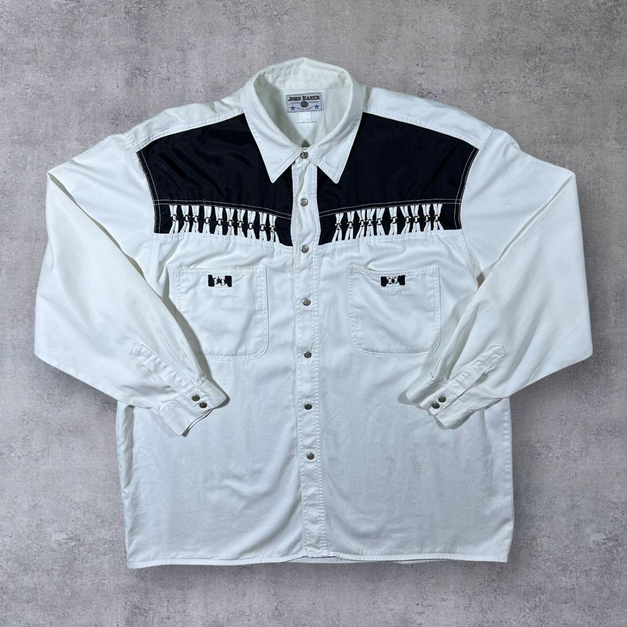 Vintage John Baner Cowboy Western Lace Panel White Popper Long Sleeve Shirt