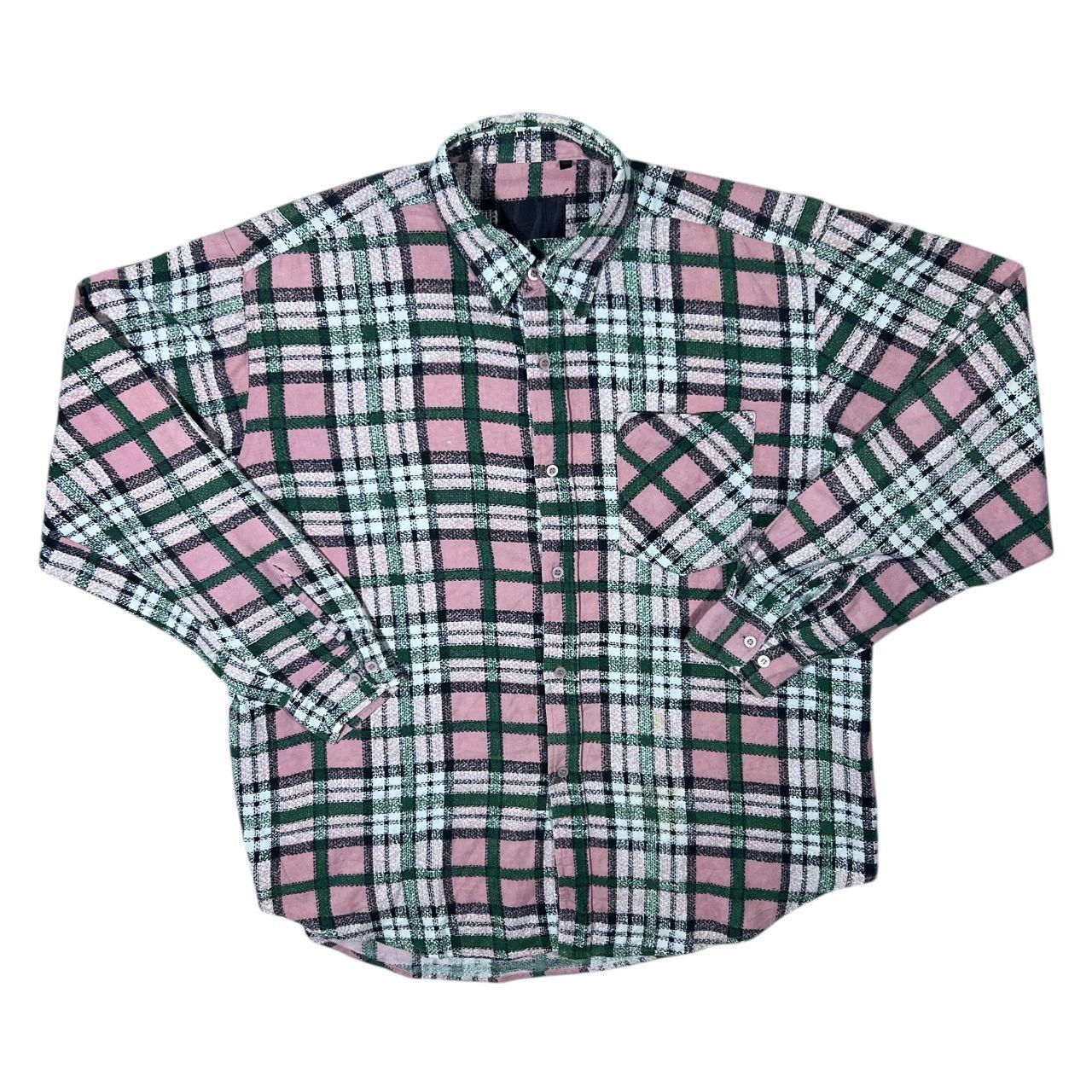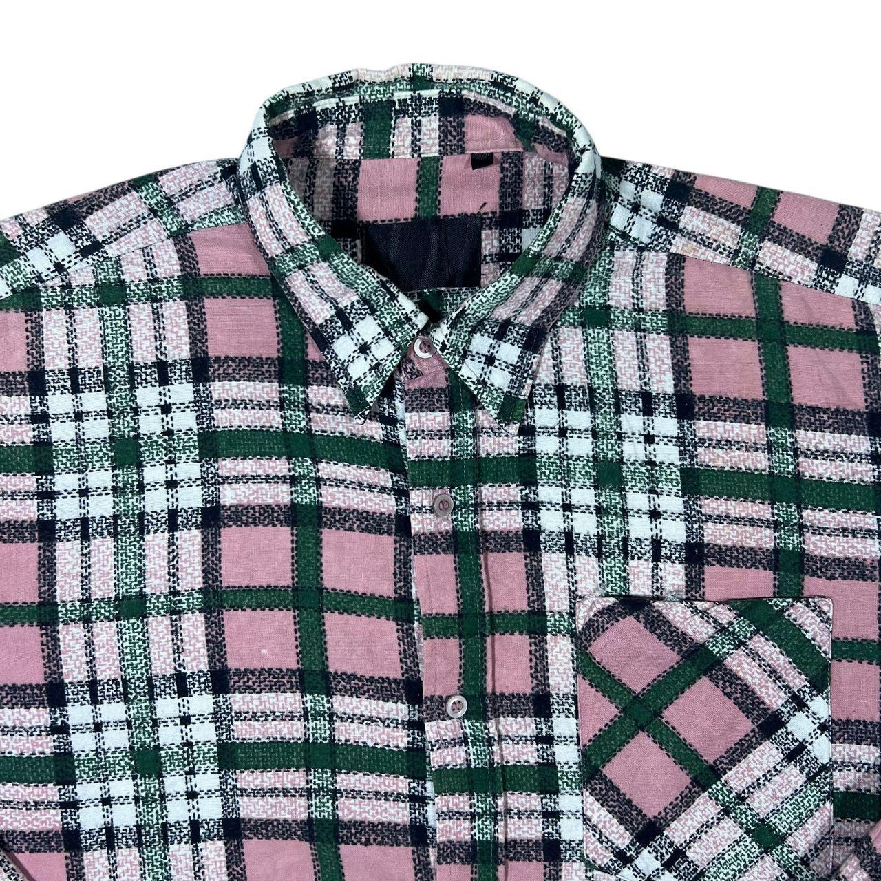 Vintage Pink Green Black White Plaid Check Long Sleeve Flannel Cotton Shirt