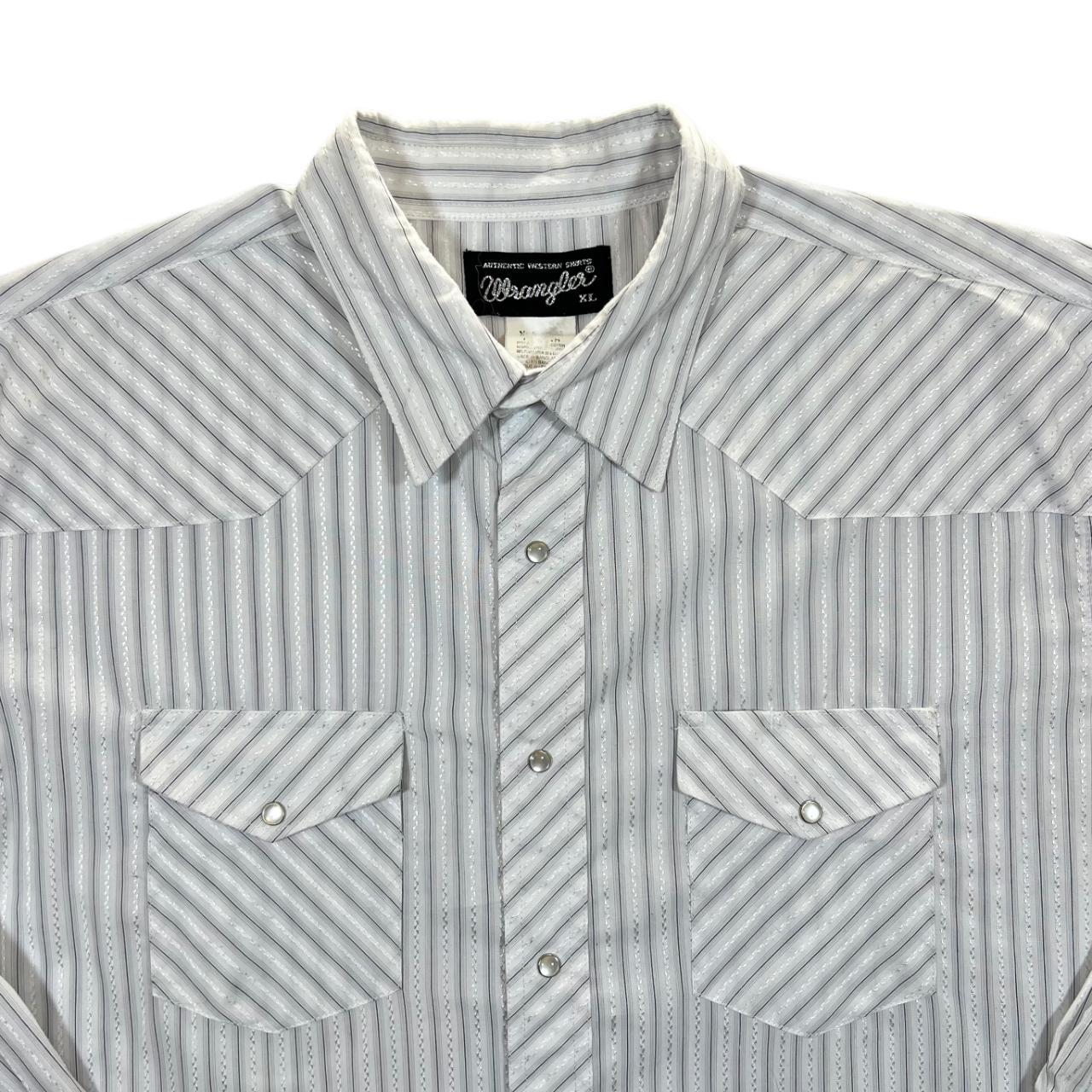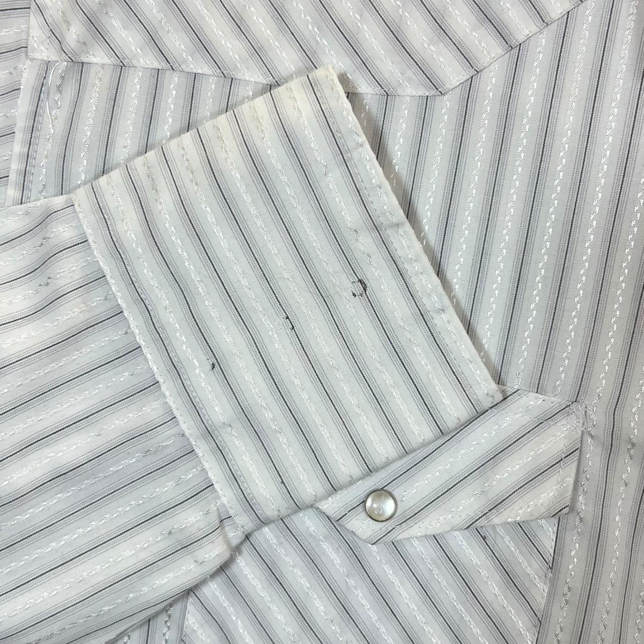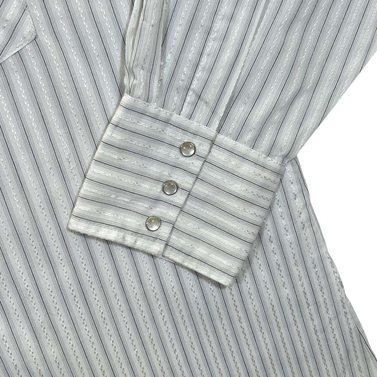 Vintage Wrangler Cowboy Western White Striped Pearl Snap Popper Long Sleeve Shirt