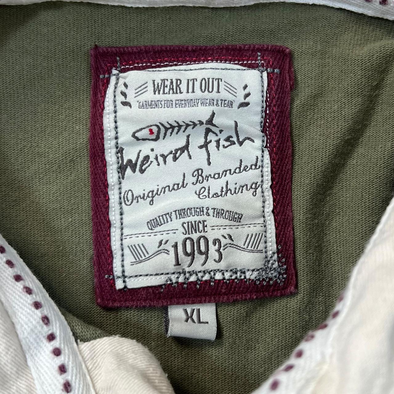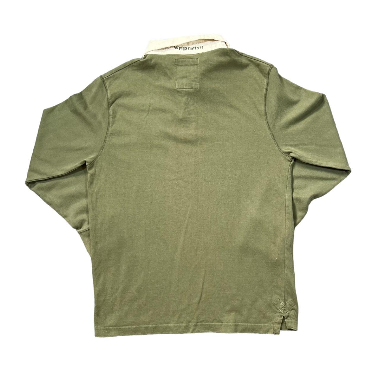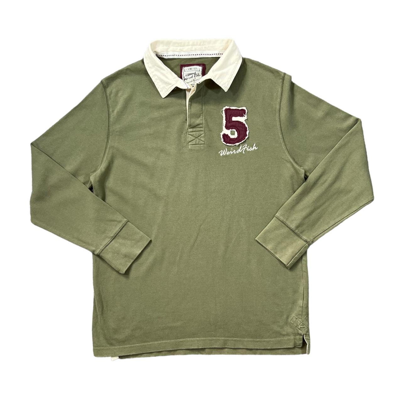 WEIRD FISH Embroidered Mini Logo Khaki Green Cream Long Sleeve Polo Shirt