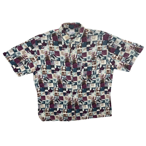 Vintage 90's Pierre Cardin Made In Korea Crazy Abstract Patterned Rayon Short Sleeve Shirt
