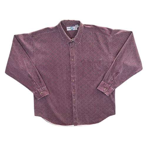 Vintage 90's World Island Made In USA Burgundy Patterned Long Sleeve Cotton Shirt