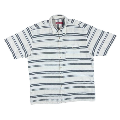 Vintage 90's PRAIRIE Cream Grey Patterned Striped Short Sleeve Flannel Shirt