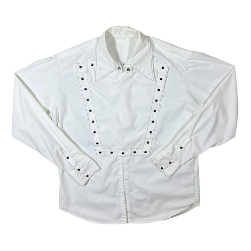 Cowboy Western Punk Style Popper Button Panel Zip White Long Sleeve Shirt