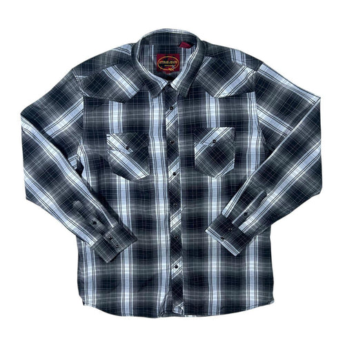 Vintage Attrak Jeans Cowboy Western Black White Grey Plaid Check Long Sleeve Popper Shirt