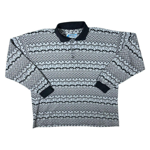 Vintage Time Sport Crazy Abstract Patterned Black Grey Long Sleeve Polo Shirt