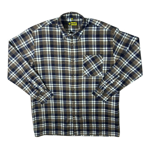 Vintage Speed.A Navy Blue Brown Plaid Check Cotton Long Sleeve Flannel Shirt