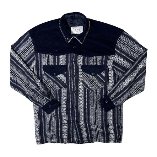 Vintage M.Zeki Golhan Black White Patterned Long Sleeve Flannel Shirt