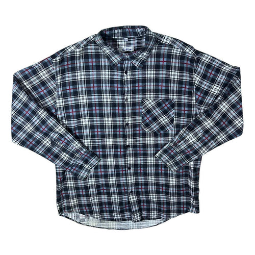 Vintage Black White Grey Plaid Check Cotton Longline Long Sleeve Flannel Shirt