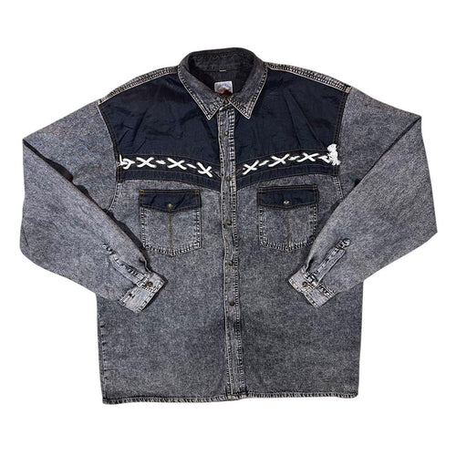 Vintage Arizona Jeans Cowboy Western Grey Acid Wash Denim Popper Long Sleeve Shirt