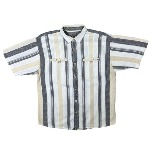 Vintage K'era Activewear Multi Striped Patterned Short Sleeve Cotton Flannel Shirt