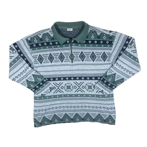 Vintage 90's JACQUES By Schiesser Aztec Patterned 1/4 Zip Long Sleeve Polo Shirt