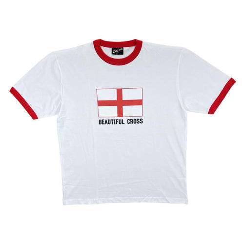 Early 00's CARLING "Beautiful Cross" England Football Souvenir Graphic Ringer T-Shirt