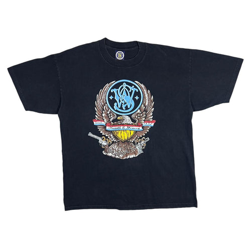 Vintage SMITH & WESSON Eagle Emblem Logo Spellout Graphic Black T-Shirt