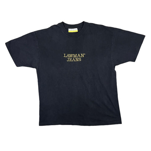 Vintage 90's LAWMAN JEANS Embroidered Logo Spellout Black Short Sleeve T-Shirt