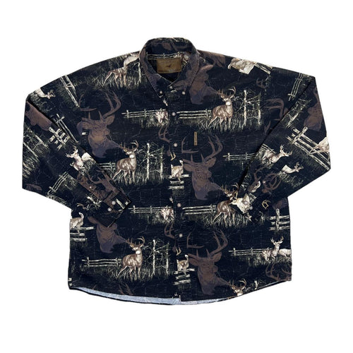 Vintage NORTH RIVER Deer Buck Nature All-Over Print Long Sleeve Button-Up Cotton Shirt