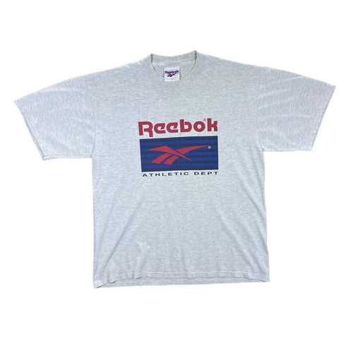 Vintage 90's REEBOK ATHLETIC DEPT Classic Big Logo Spellout Graphic Short Sleeve T-Shirt