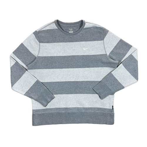 NIKE Athletic Dept. Embroidered Mini Logo Colour Block Grey Striped Crewneck Sweatshirt