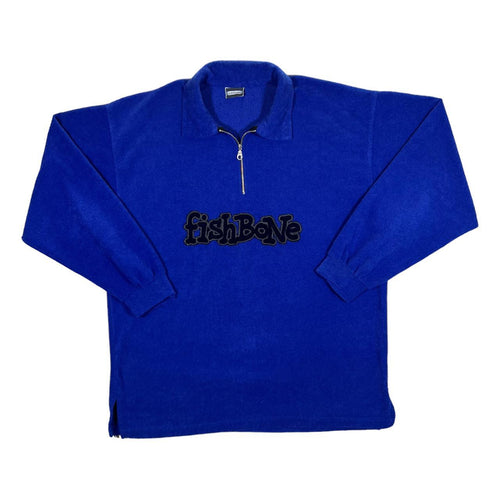 Vintage FISHBONE Embroidered Big Spellout Hip Hop Y2K 1/4 Zip Collared Fleece Sweatshirt