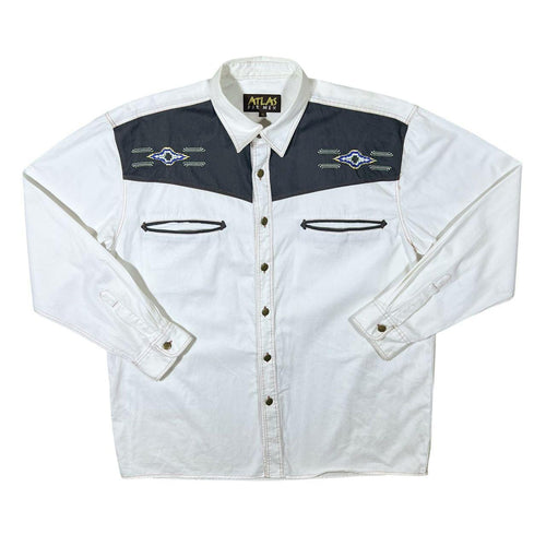 Vintage Atlas For Men Cowboy Western Embroidered Aztec Long Sleeve Cotton Shirt