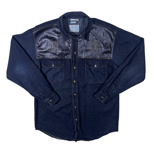 Vintage Stockerpoint Cowboy Western Blue Denim Leather Panel Popper Long Sleeve Shirt