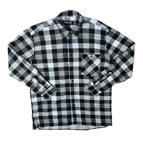 Vintage Mayne Black White Plaid Check Long Sleeve Cotton Flannel Shirt