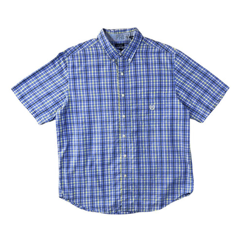 Early 00's CHAPS Classic Plaid Check Embroidered Mini Logo Short Sleeve Button-Up Shirt