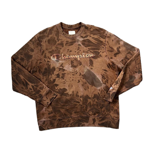 CHAMPION Elite Classic Embroidered Big Logo Spellout Tie Dye Crewneck Sweatshirt