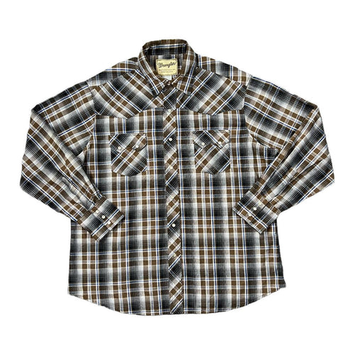 Vintage 90's WRANGLER Western Cowboy Plaid Check Pearl Snap Popper Long Sleeve Shirt