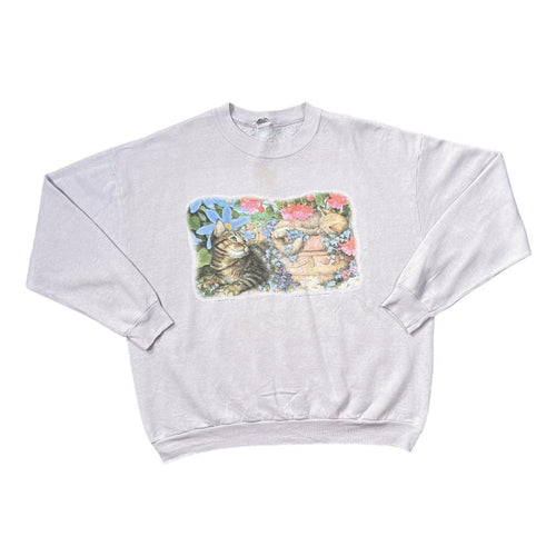 Vintage B-WEAR (1996) Cat Kitten Animal Nature Wildlife Graphic Crewneck Sweatshirt