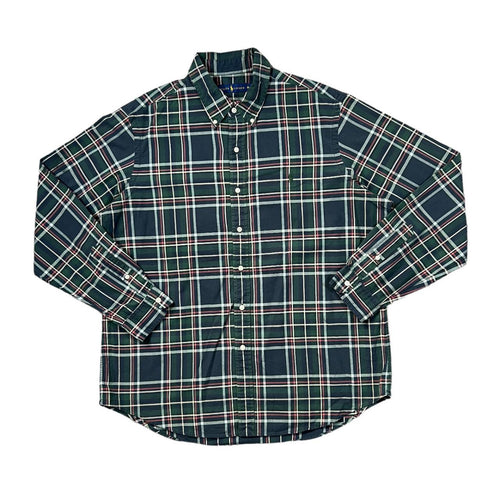 Vintage RALPH LAUREN "Bradfield" Embroidered Mini Logo Green Check Long Sleeve Button-Up Shirt