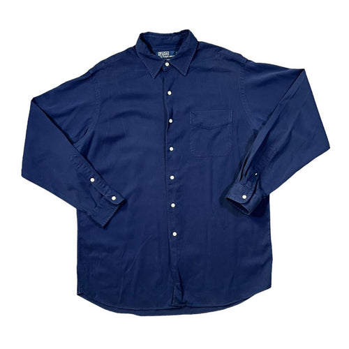 Early 00's POLO RALPH LAUREN "Marlowe" Classic Navy Blue Silk Cotton Long Sleeve Shirt